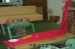 千斤頂,俗稱鐵人,一種應用小力量來頂高重物的工具,具有四兩撥千斤的功能,使設備維修者很容易操作此器具,並頂得住工作設施千斤負載的能耐。千斤頂作用方式有油壓式、水壓式、螺旋式、齒輪式、氣壓式等各種型式,負載規格從百公斤到百公噸都有,操作方式從手動操作到使用油壓泵、氣壓泵、電動力輔助的各式操作。使用範圍廣;有船用、建築用、汽車用、土木用、機械工業用等,其用途依搬移工作物所需的負載及揚程高度等不同。針對汽車用千斤頂一般係用於汽車底盤下的作業,例如修護、保養、輪胎更換等工作。