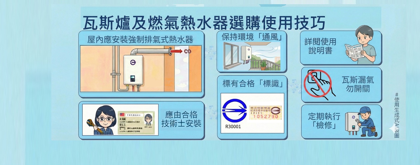 - 標準局提醒民眾正確使用瓦斯爐及燃氣熱水器過好年